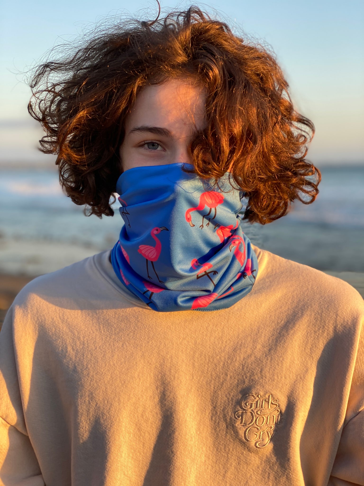 The Flava Me Flaminga Lightweight Fleece Winter Gaiter gives you protection from the elements – sun, wind, bitterly freezing cold Northeasters, dust, dust bunnies, that high school friend whose name you can’t remember, and anything or anyone else that you might be hiding from - all under a stylish statement that says “I’m here and if my face can’t be shown right now and the world were to end tomorrow I’d prefer you remember me looking like this.” The Flava Flaminga gaiter can be worn in so many ways that we can’t list them all here because our site might get reclassified. But you could start by keeping it simple, using Flaminga as a face covering, neck gaiter, or headband. From there, it’s up to you.